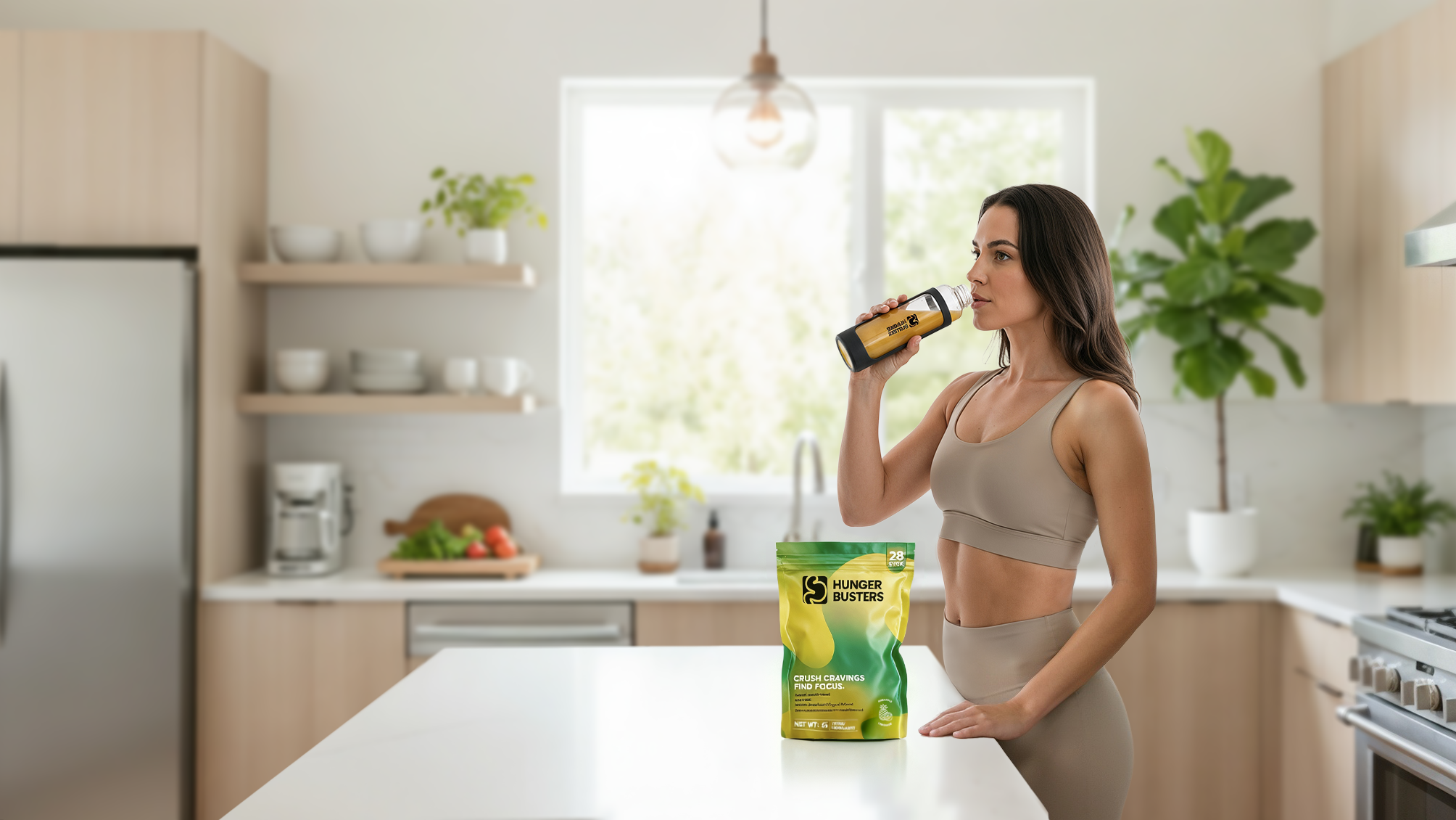 “ Hunger Busters delivers! When sudden cravings hit between pick-ups and errands, I grab a stick pack, mix it—poof—junk food urges vanish. It’s fast and convenient. Gives me clean energy to power through my day, no extra coffee needed. works with my chaotic schedule, keeping me in control.”